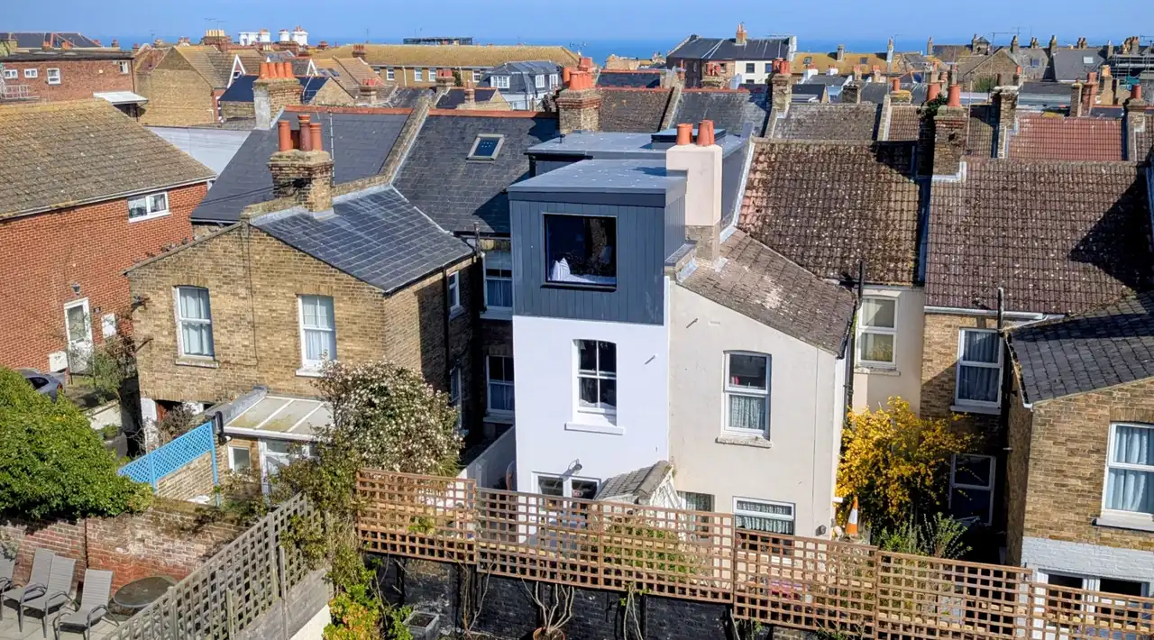 This Broadstairs loft conversion and Victorian terrace renovation successfully transformed the property from a cramped two-bedroom house into a generous, light-filled, and colourful four-bedroom family home, complete with two additional bedrooms and a new family bathroom. Despite challenging site access (all materials and works had to pass through the ground floor) and a sensitive planning application due to the property’s proximity to neighbours, we secured first-time planning approval in Thanet. The contemporary L-dormer maximised the site’s potential, creating bright interiors that blend modern design with the historic character of this Victorian home renovation in Kent.