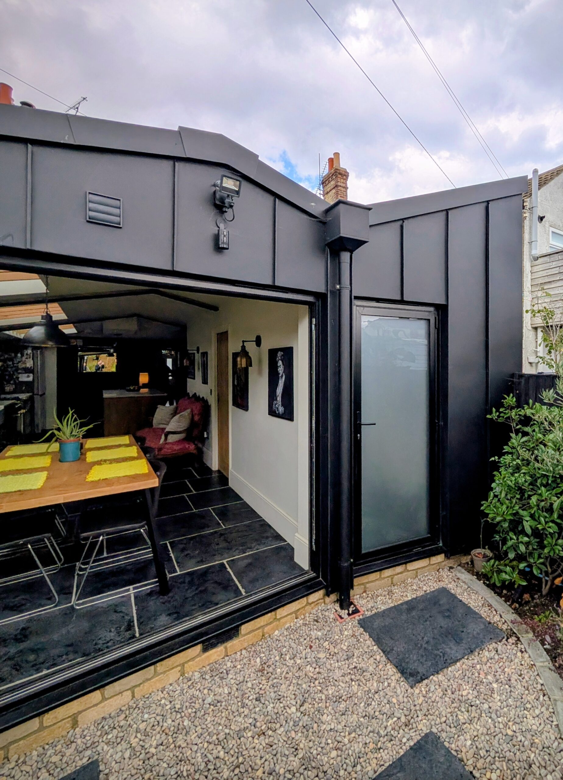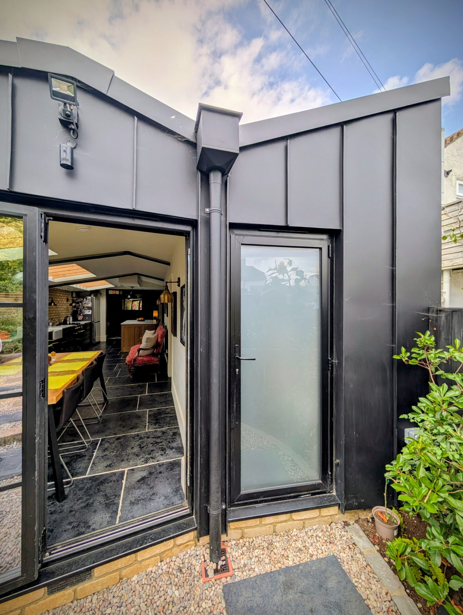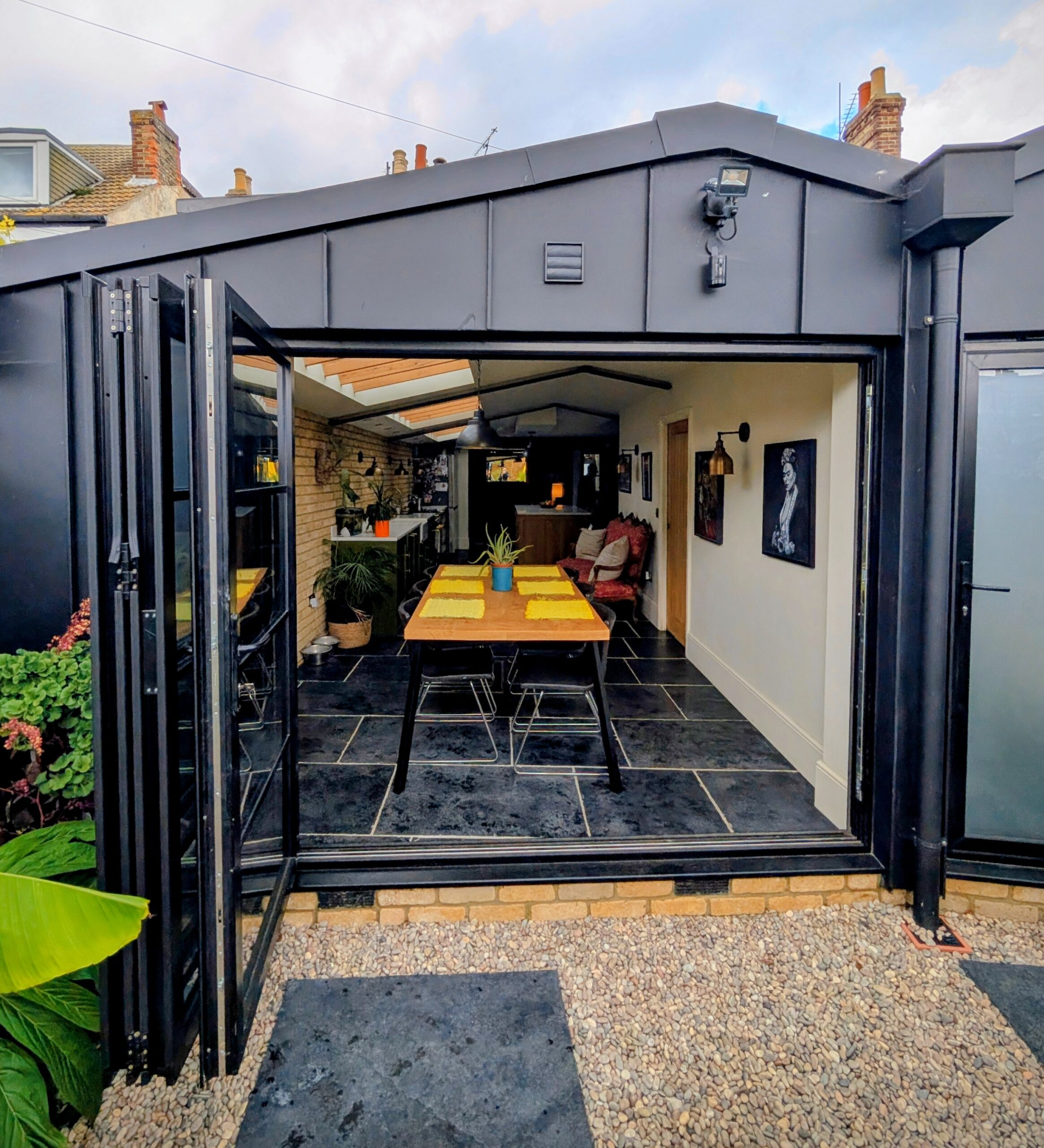 This contemporary Zig-Zag Extension in Whitstable demonstrates how bold modern design can work sensitively within a Conservation Area. The extension, named for its distinctive angular roofline, reconfigures and extends the rear of a traditional home to create a dynamic addition that enhances space, light and connection to the garden.